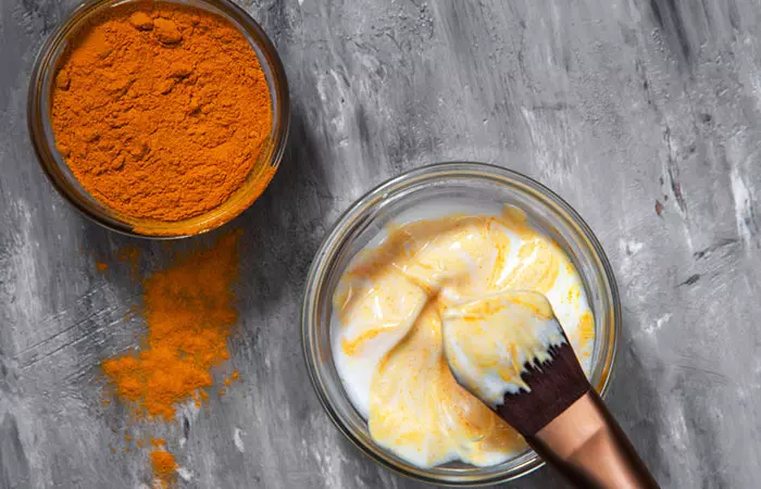 - തൈരിലേക്ക് ഒരു നുള്ള് മഞ്ഞൾപ്പൊടി ചേർത്തിളക്കി യോജിപ്പിക്കുക.