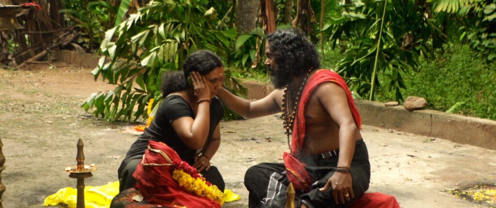 The story takes a surreal turn when an ordinary man, appearing as a simple traveler with a shaved head and a walking stick, claims to be the true manifestation of God. His piercing question—”Have you ever seen God before?”—shatters Kumaraswami’s ego. This encounter forces him to confront a dark secret: the accidental death of the husband of his chief disciple, Induvathi, a tragedy from his past that continues to haunt him.